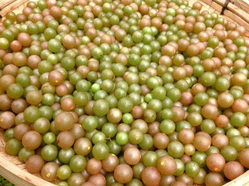 The Muscadine grapes, native to the southern U.S.A., are distinct for larger and rounder fruits, often bigger than regular grapes, with most varieties being seeded. Despite having smaller stems and leaves, these vine fruits are more aromatic. Although some have high sweetness levels and low acidity, they’re less vulnerable in harsh climates, except during their first year of growth.