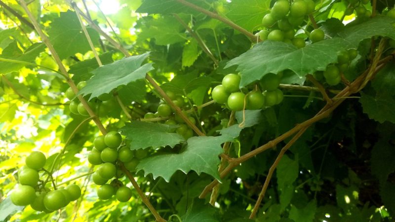 The Muscadine grape varieties tolerate high heat and humidity, do not sour like Vitis vinifera and Vitis labrusca, and are drought and heavy rain-resistant due to their tough skins, which deter birds. This robust vine grows quickly, making it beautiful coverage for pergolas and gazebos, but they go dormant last and re-emerge last, needing sturdy support for their weight. Despite offering aesthetic value in summer, they are unattractive in winter when they become dry and leafless, requiring labour-intensive trimming due to multiple side branches and intertwined stems.